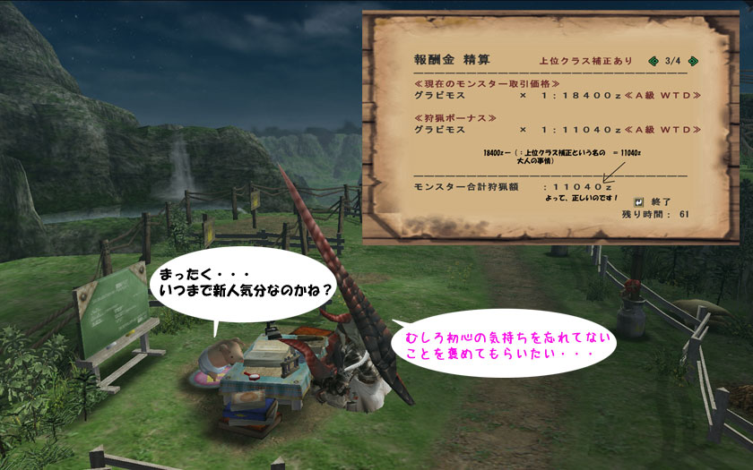 ぱぴ:モンスター取引価格:18400z+狩猟ボーナス11040z =手取り29440z