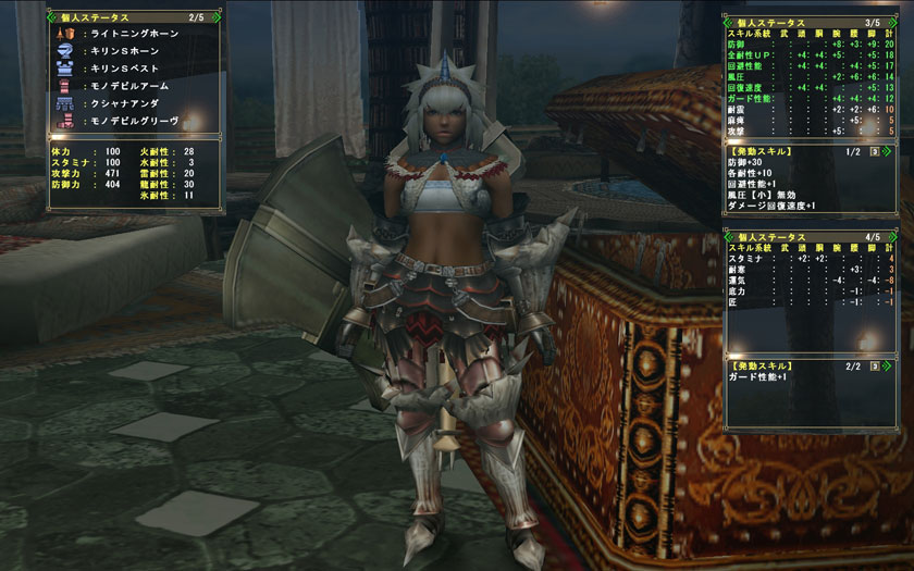 ま、無事にクリアしまして、尖角がゲットできたので、やっと「金色」装備の胴の部分が作れたw