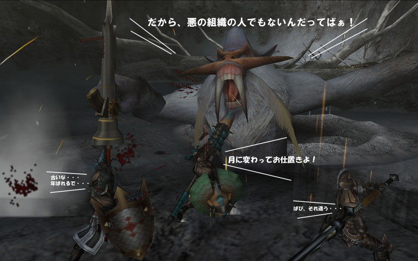 BGMよりも、モンスの声よりも、デカイ! しかも言葉が聞き取れないから、