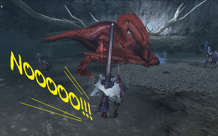 繁殖期の密林7番には、ランポス隊が駐在してまして、ハンターよりもレイアを攻撃してくれます。