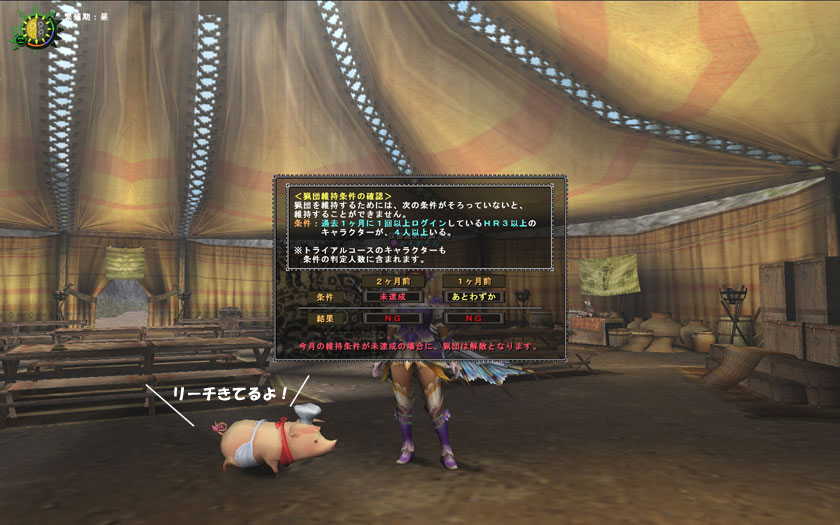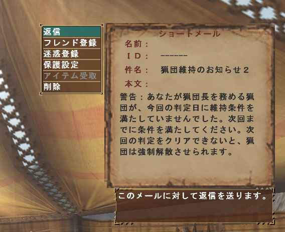 サブキャラの「せばすちゃん」をマイ猟団にいれて、安心してたところに、