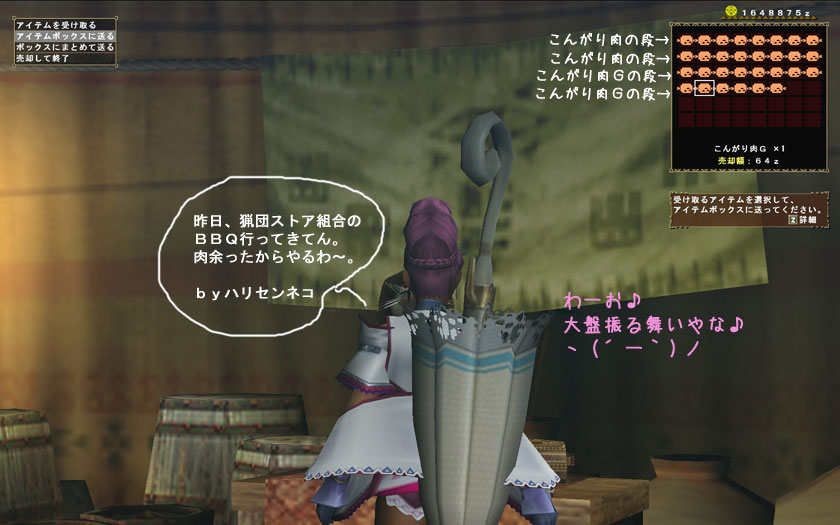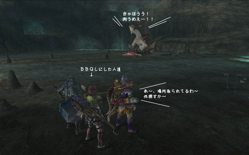 (リアルでBBQやると、MHFの世界にまで、お肉の影響を及ぼすという意)